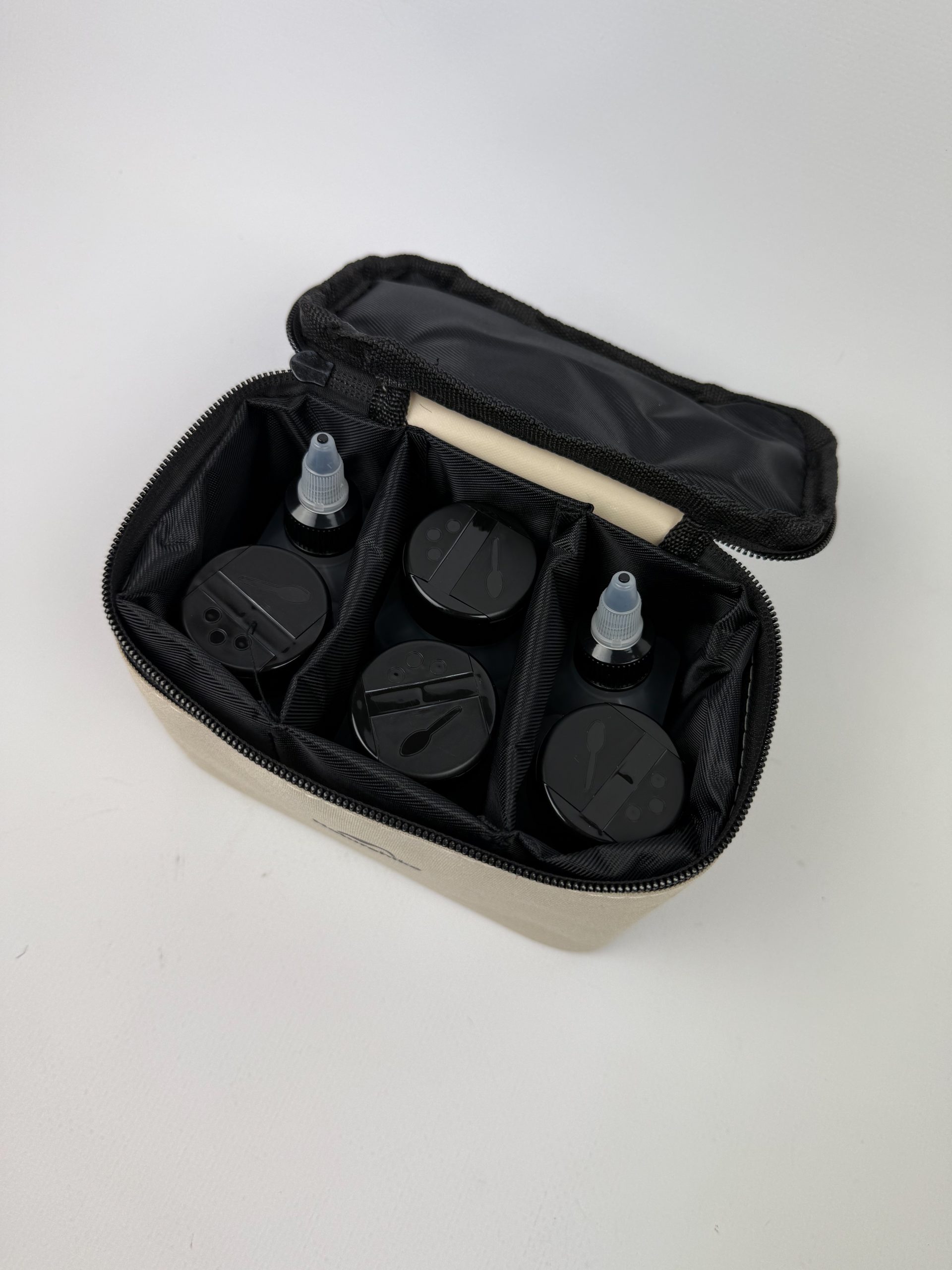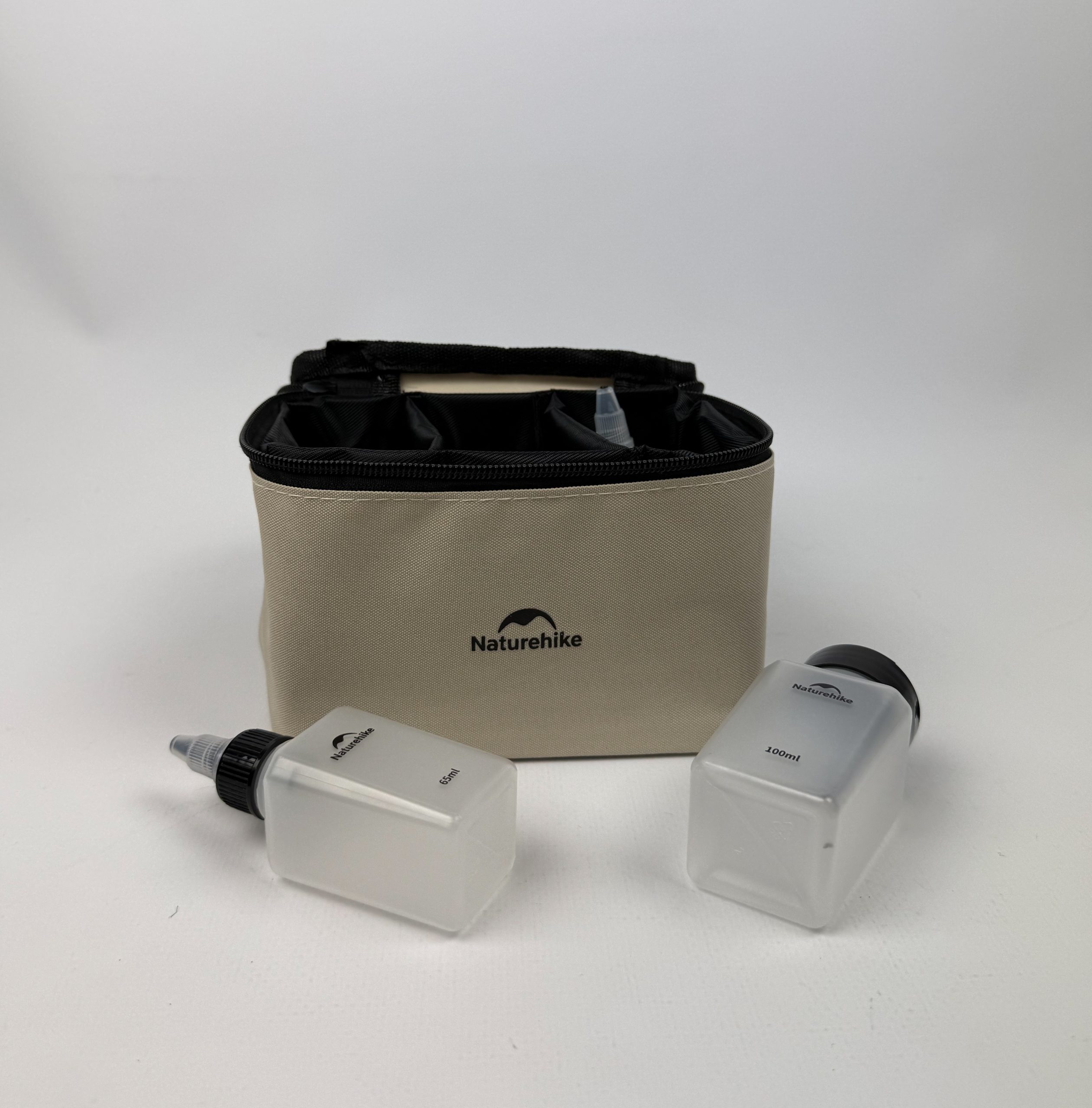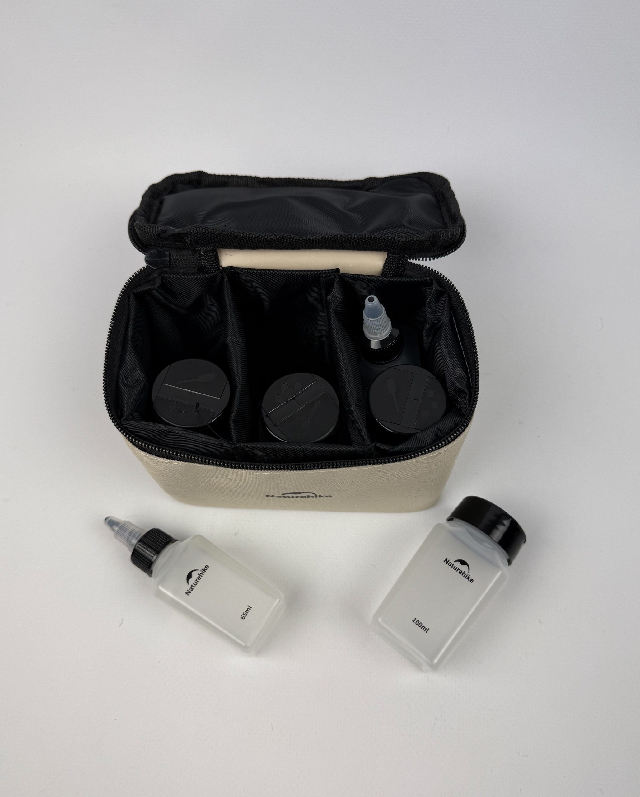 Зручна сумка-органайзер з трьома внутрішніми відділеннями забезпечує порядок та швидкий доступ до всіх елементів набору. Вона допомагає компактно зберігати ємності та захищає їх від пошкоджень. Загальна вага набору складає лише 257 г, що робить його чудовим вибором для походів, подорожей та щоденного використання. Такий аксесуар стане незамінним помічником у будь-якій поїздці.